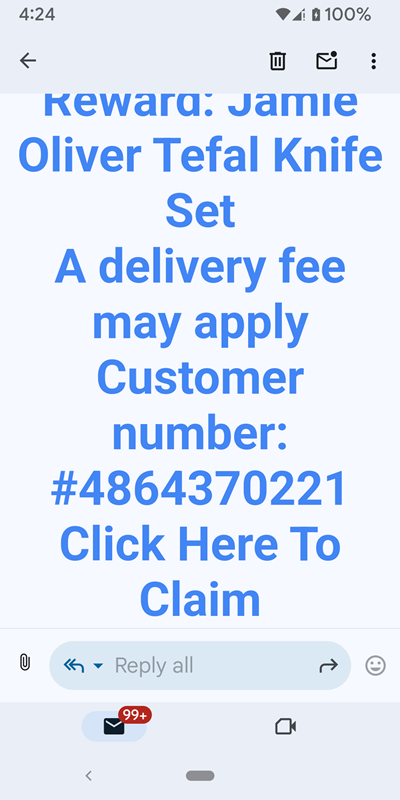 We are aware of a scam email being sent to customers, asking them to complete a questionnaire in order to receive a Jamie Oliver knife set.