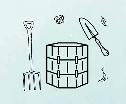 Start composting food scraps and cardboard in the bin (layers of each work best). We recommend using a mixture of 40% food/green waste and 60% cardboard/leaves. Tip: ripping or chopping material into small pieces will help it break down faster.