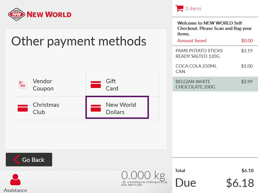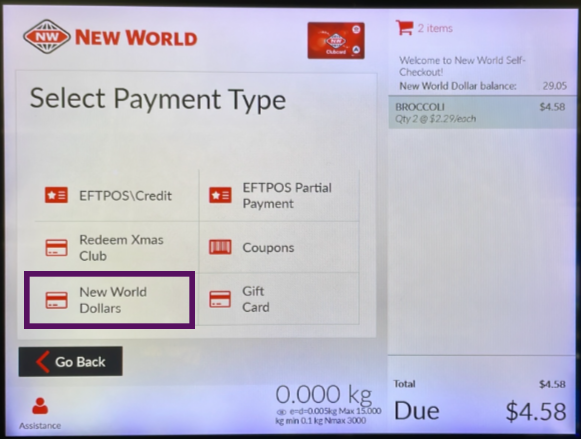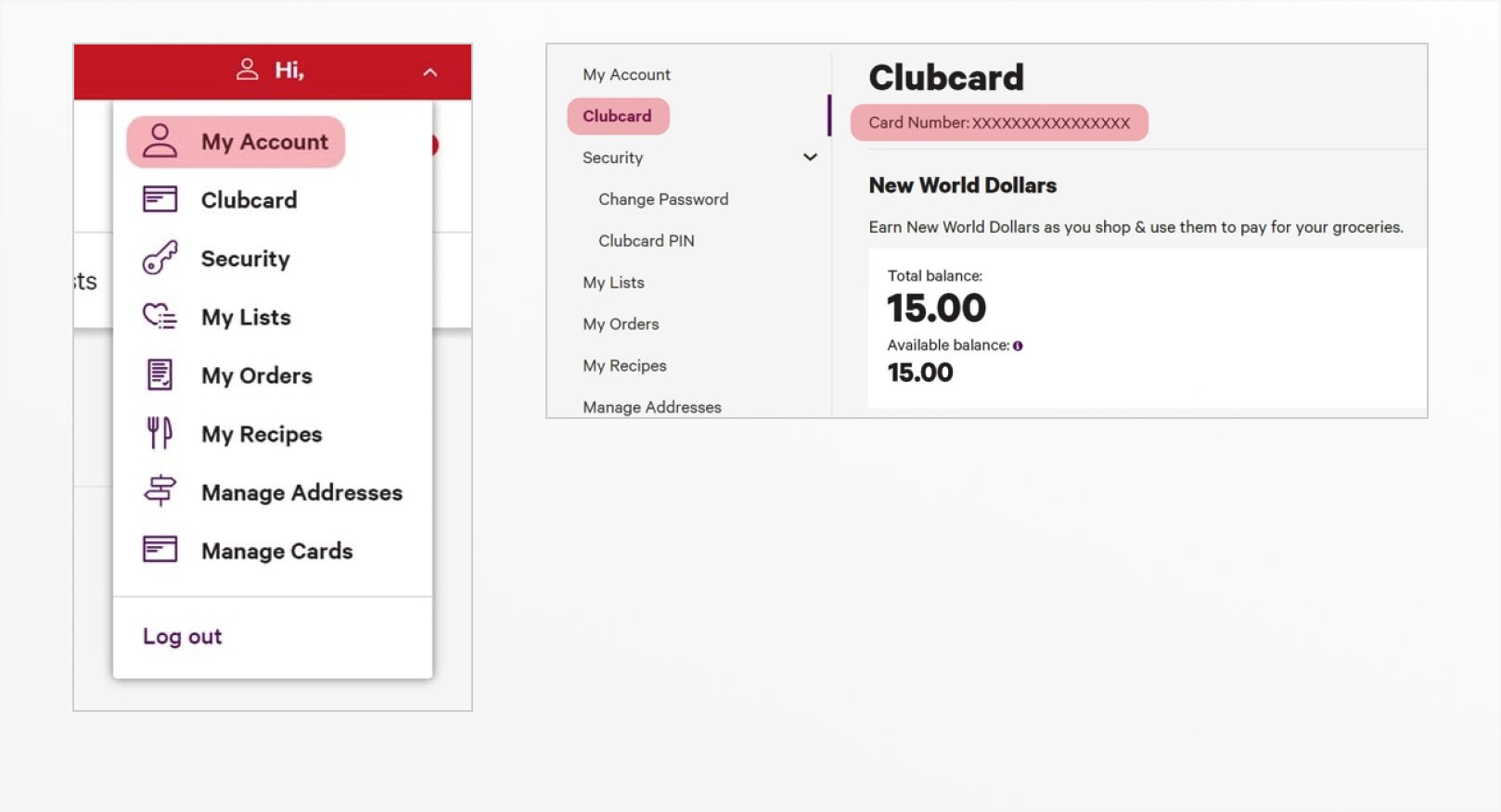 If your Clubcard is linked to your online shopping account and you have a New World Dollar balance: