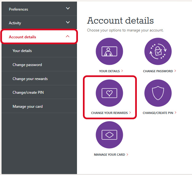 - Or logging into your Clubcard account at clubcard.co.nz and selecting Account details, then Change your rewards