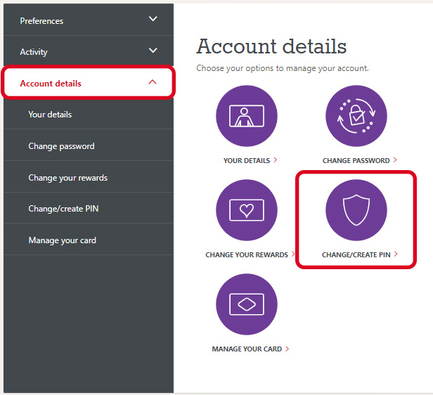 Click this link to take you straight to the Change/Create PIN page on clubcard.co.nz Alternatively log into your Clubcard account at clubcard.co.nz and select Account details, then Change/Create PIN