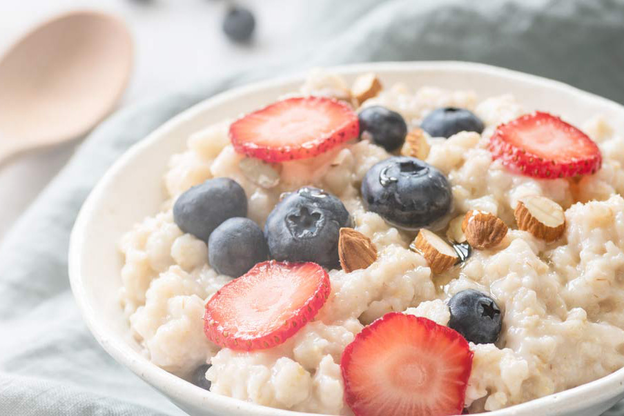 Whole oats are also packed with antioxidants that help lower your blood pressure, lower your cholesterol and even have some anti-inflammatory properties. As a good source of soluble fibre, porridge oats support healthy gut bacteria which is good for digestion and your overall health.TIP: A bowl of porridge makes you feel full for longer, so you’re less likely to snack or overeat during the rest of the day.