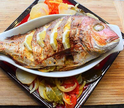 This one pot recipe showcases fresh New Zealand fish on a bed of thinly-sliced crispy potatoes. Tasty, healthy, and a great dish for either a weeknight meal or entertaining guests. The fish can be cooked whole but can also be cooked with fillets by reducing the oven time.