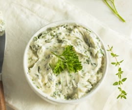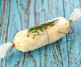 Great with BBQ steaks, mash a soft blue cheese with 50gms softened butter, chopped fresh thyme or chopped chives.
