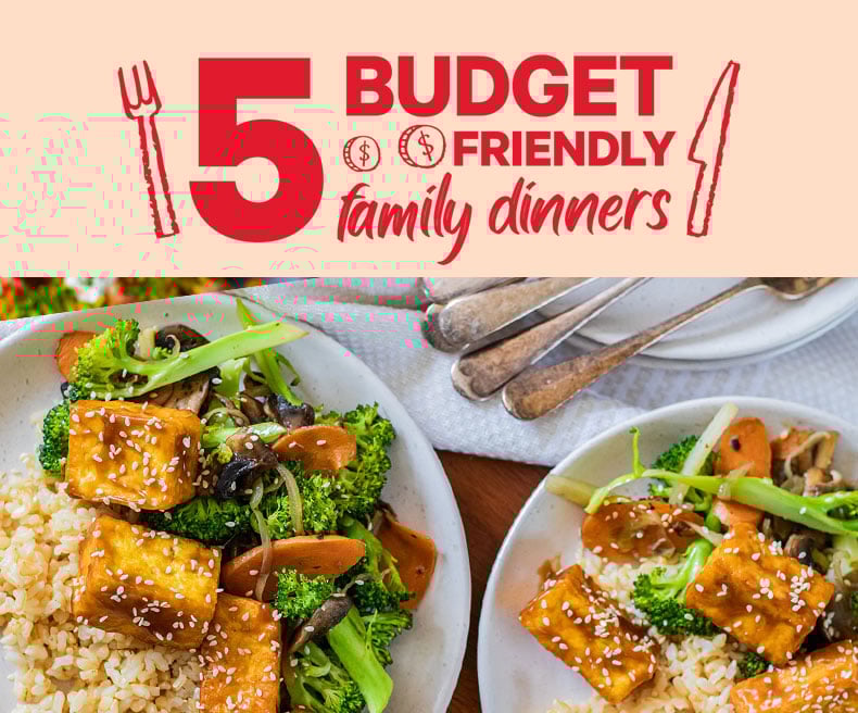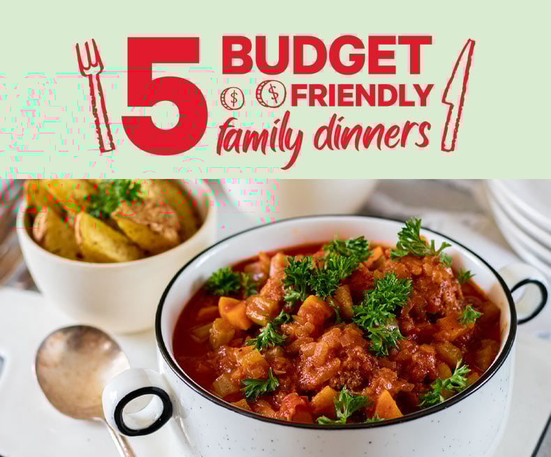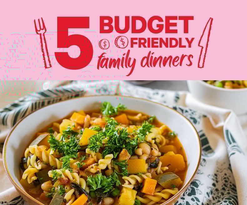 * Each meal plan of 5 meals is designed to use in-season fruit and veges. Fruit and vege growing conditions and pricing vary throughout each season, so choose cheaper in season fresh, or frozen substitutes if a particular item is unseasonably expensive.