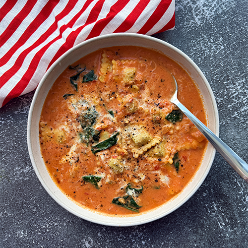 Enjoy a cozy bowl of Creamy Ravioli Soup, blending tender ravioli, fresh spinach, and rich cream for a quick, heartwarming meal.