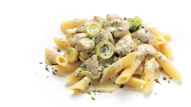 Creamy tarragon chicken and leek pasta