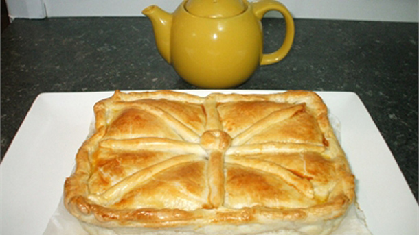 1 packet Pams Flakey Puff Pastry 2-4 sheets of pastry depending on the size of pie the dish