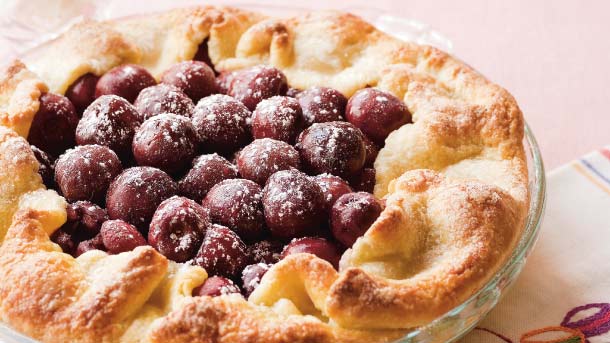 Pile cherries into the centre of the pastry, with whole ones on top.