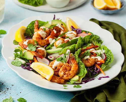 Start on that health kick with these grilled prawn lettuce wraps. They’re refreshing and crunchy with a touch of spice, perfect for a healthy weeknight meal. Loaded with fresh veggies and drizzled with a lemony yoghurt dressing.