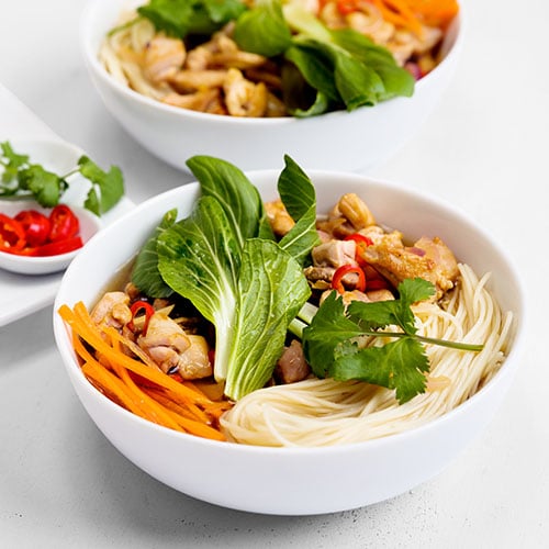 Add the noodle nests and cook as per packet directions. Add the carrots and bok choy for the last 2 minutes of cooking time.