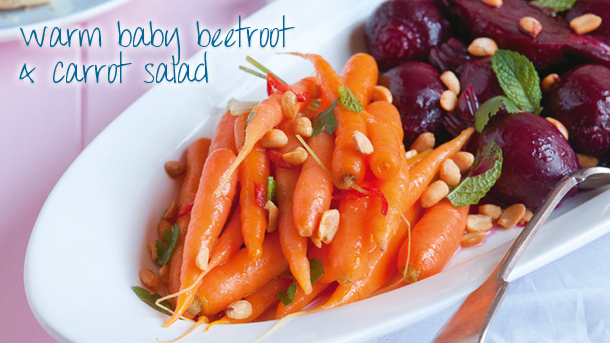 Warm baby beetroot and carrot salad
