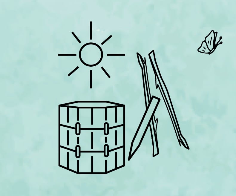 Place sticks/twigs in the base of the bin to allow air flow. Tip: If you have space, set up two bins so when one is full you can start filling up the other.