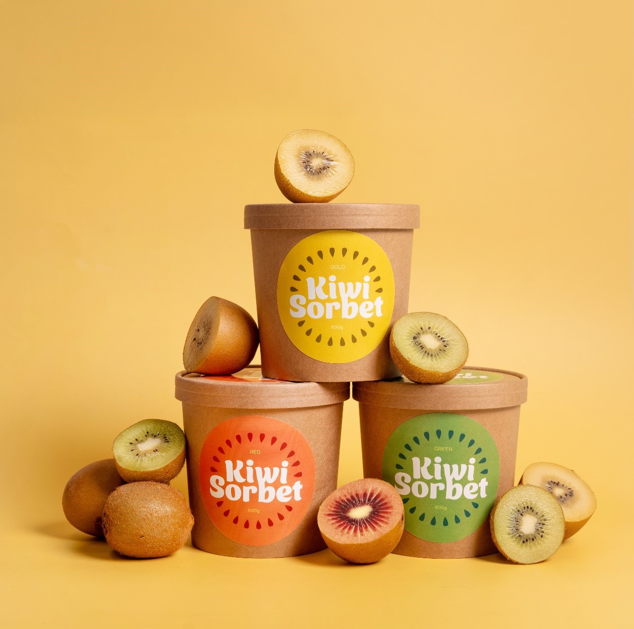 | The Real Fruit Sorbet Company - Kiwi Sorbet Green, Gold & Red | Teeny Teeth NZ - Trio-Toothbrush (Three sided brushing!) |